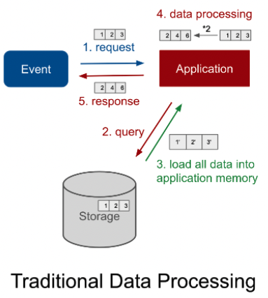 - 요청이 오면 저장소에 쿼리해서 모든 데이터를 메모리로 가져온(적재한) 후에야 4번 같이 다음 처리를 한다. 추가로 필요한 데이터가 있다면 이것도 전부 메모리에 적재해야 한다.