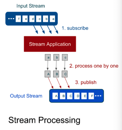 - 입력 데이터에 대한 파이프 라인을 만들어서 데이터가 들어오는 대로 물 흘듯이 구독(subscribe)하고, 처리(process)한 뒤 발행(publish)까지 한번에 연결해서 처리한다.