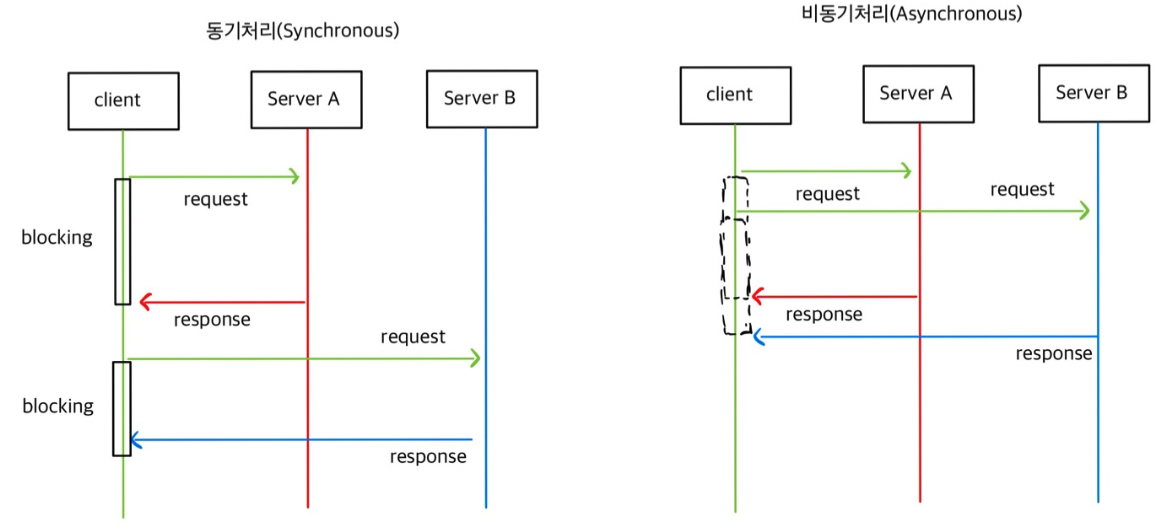 - A서버에게 요청을 보낸 뒤 다른 일을 처리할 수도 있고, 혹은 B 서버에게 또다른 요청을 보낼 수도 있다.