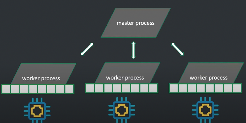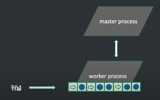 그리고 Nginx에서는 이런 worker process를 보통 CPU의 코어 수만큼 생성한다.