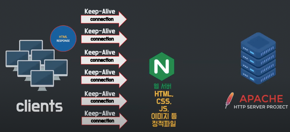 Nginx : 동시 커넥션 문제 해결에 좋음.