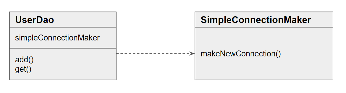 - UserDao는 자신이 쓸 ConnectionMaker 구현 클래스를 직접 결정하고