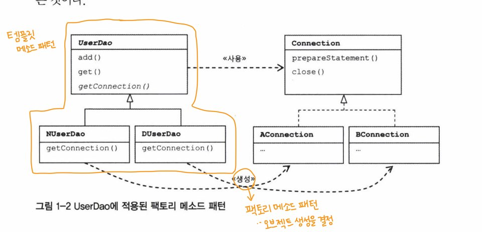 - DB 커넥션을 제공하는 클래스를 사용하려면 UserDao의 소스코드를 직접 수정해서 Connection 객체를 바꿔야 하니까 맨 처음처럼 UserDao 소스코드 없이는 DB 연결 방법을 바꿀 수 없다는 처음의 문제로 돌아왔다.