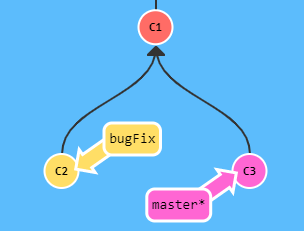 여기서 master를 bugFix 위치로 옮기기 위해 master로 가서 git rebase bugFix를 하면 아래 모습과 같아집니다.