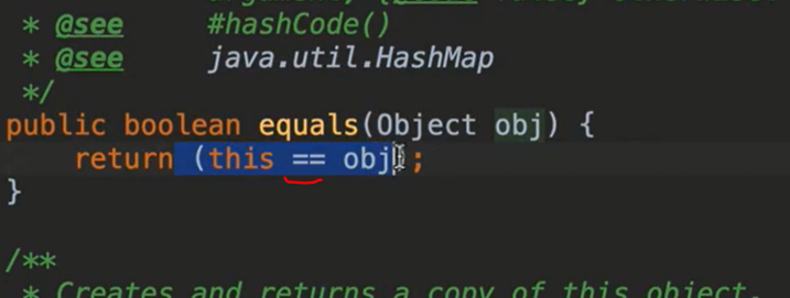 왜냐하면, java.lang.Object에 있는 equals 메소드의 기본이 ==로 되어 있기 때문이다.