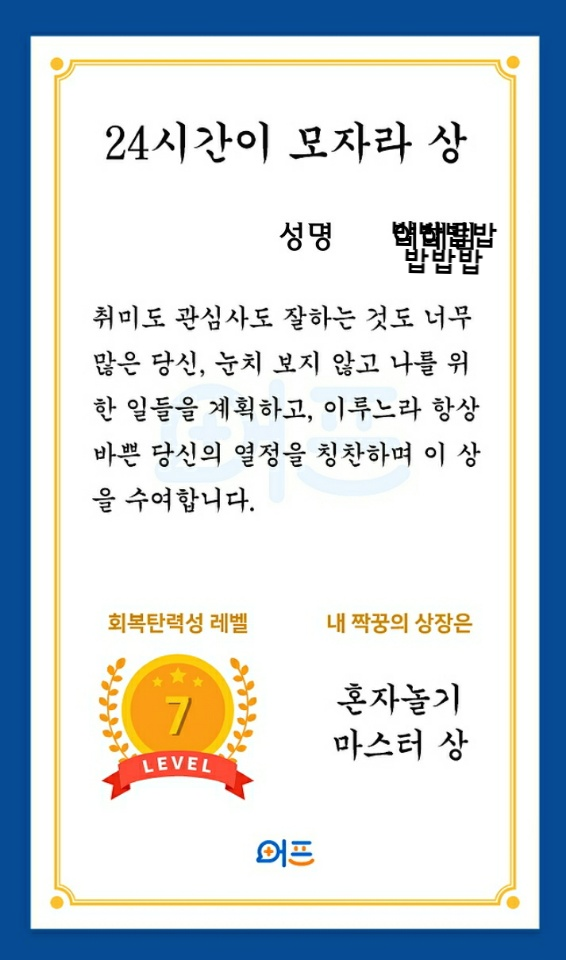 2020 어프 성격 시상식 - 회복탄력성 테스트 (링크 있음) 본문