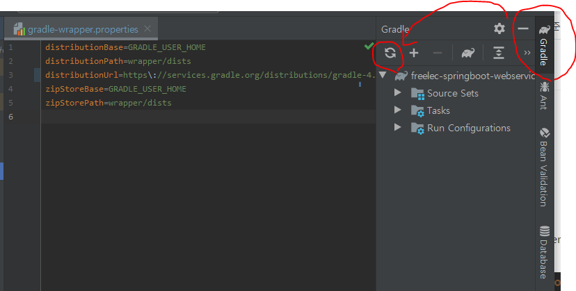 우측 상단에 있는 Gradle로 들어가서 새로고침하기