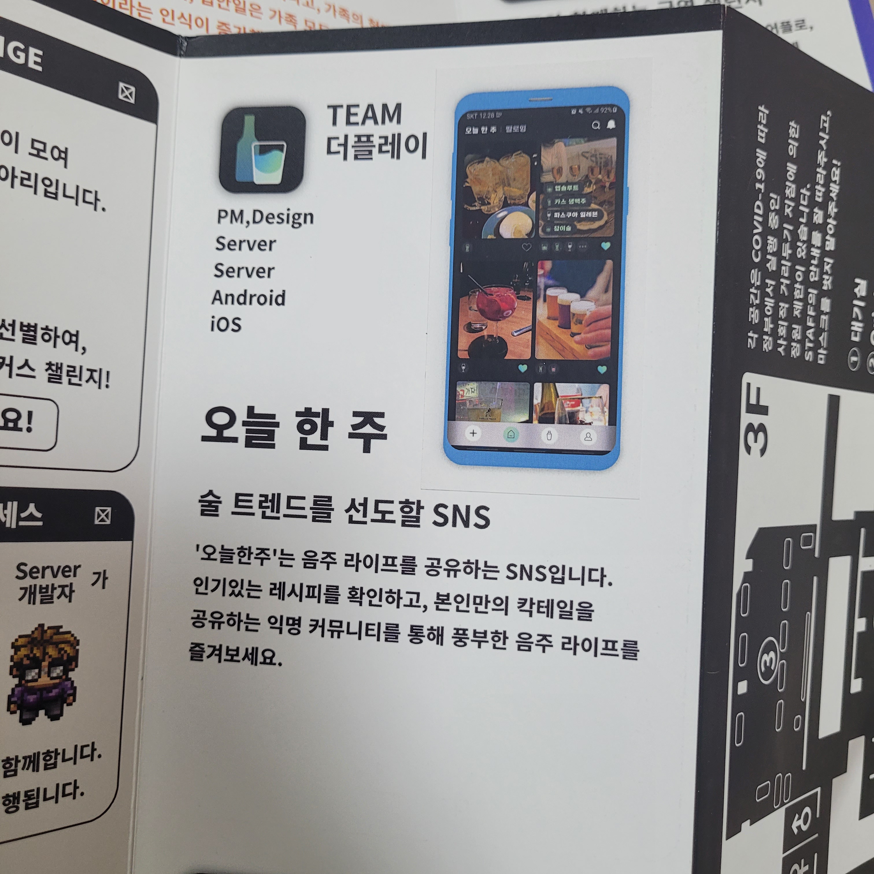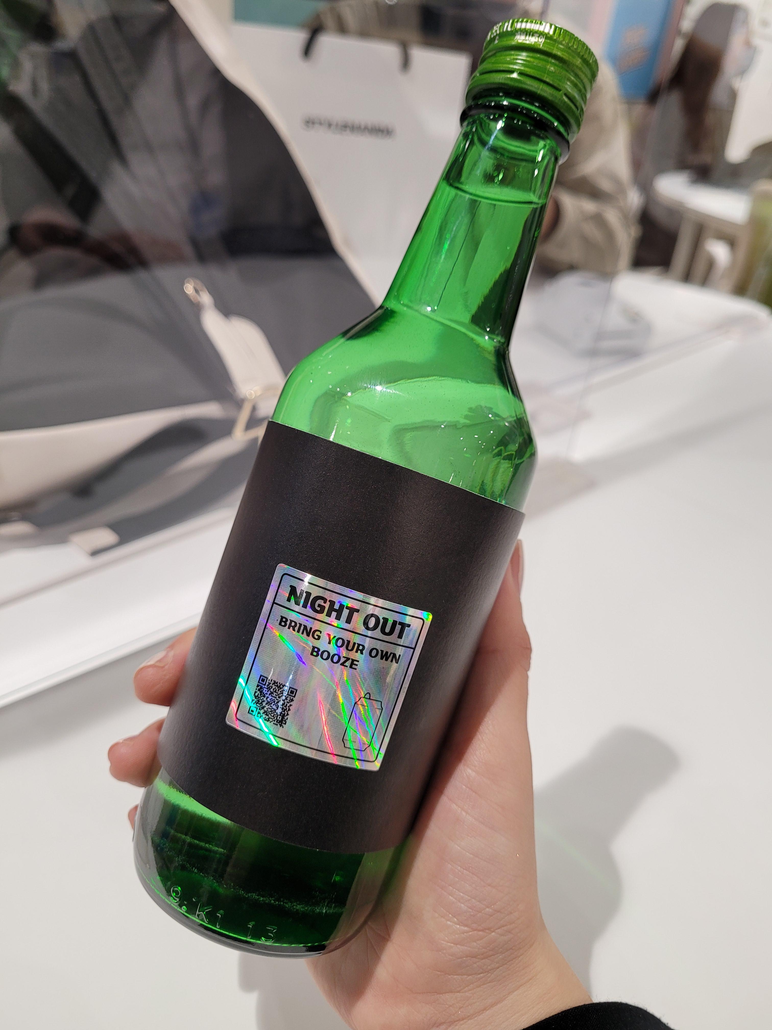 부스에 스티커랑 명함도 두고, 술 관련 앱이니까 주류 회사와의 제휴를 희망하면서 저렇게 소주도 뒀어요. ㅋㅋㅋㅋ 미친디테일....