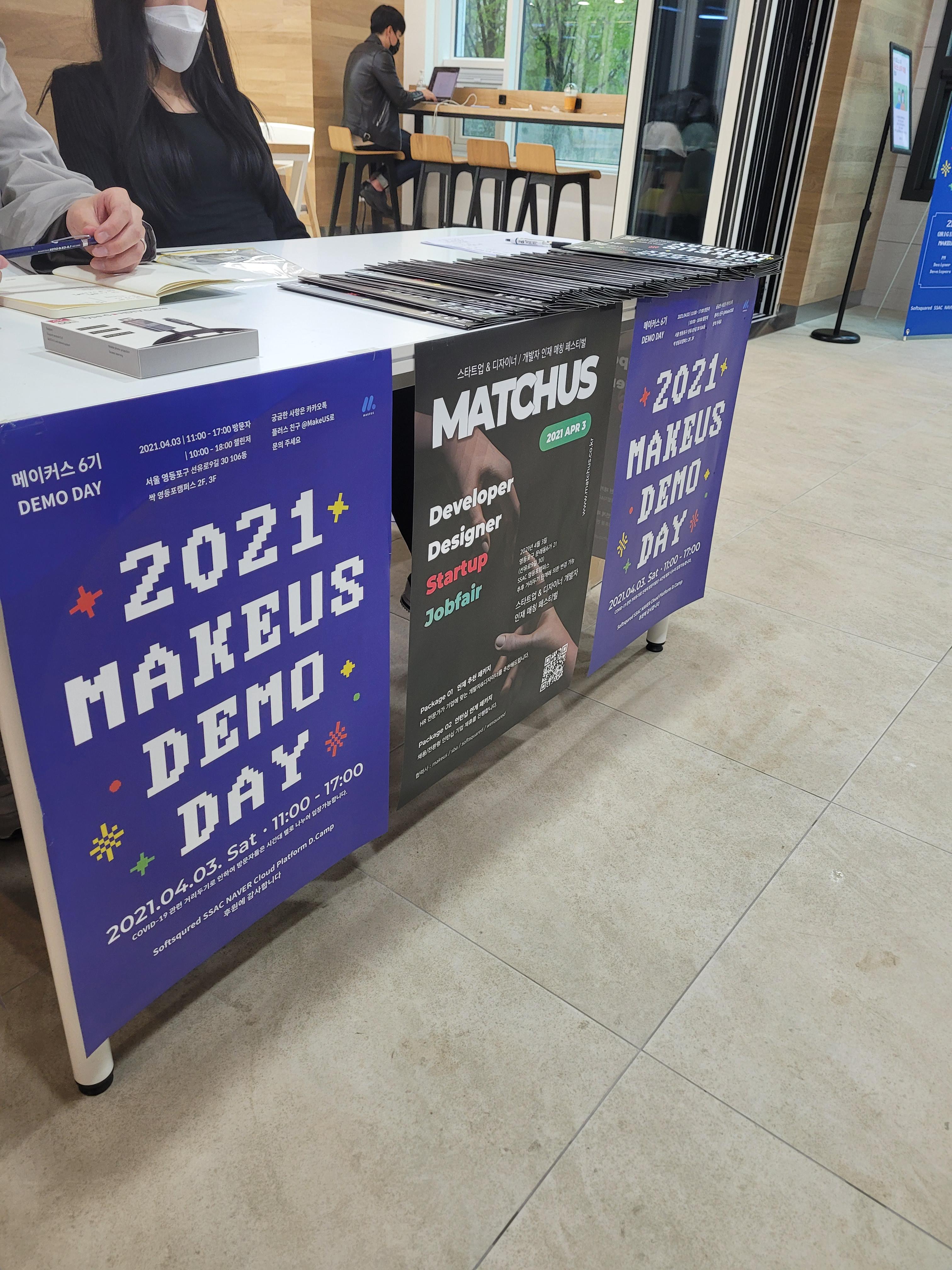 토요일에 비가 그렇게 쏟아지는데도 불구하고 많은 분들이 데모데이에 방문해 주셨어요. 특히 기업 관계자 분들도 오셔서 사업성과 관련한 피드백을 받을 수 있었답니다! 저는 이런 점이 데모데이의 큰 장점인 것 같아요. 인사 담당자 분들께서 찾아오시니까 그것도 재밌더라고요. DB 테이블을 궁금해 하신 분도 계셨어요. 기술 스택도 궁금해하시고.