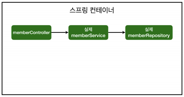 - 다형성만으로는 구현 객체를 변경할 때 클라이언트 코드도 함께 변경되어 버려서 쉽게 부품을 갈아 끼우듯이 개발할 수 없다. (MemberRepository의 구현체를 memory -> jdbc로 변경할 때 코드가 바뀌어 버리니까)
