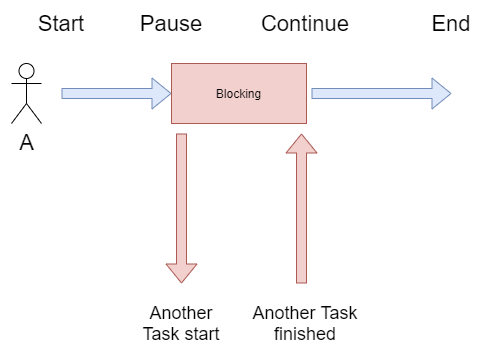 자신의 작업을 하다가 다른 누군가가 작업하는 것의 시작부터 끝까지 기다렸다가 다시 자신의 작업을 시작하는 것이다.