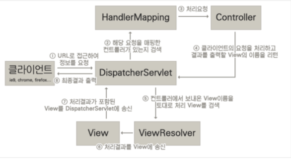 5. 요청을 처리한 뒤 결과를 DispatcherServlet한테 전달(Response)