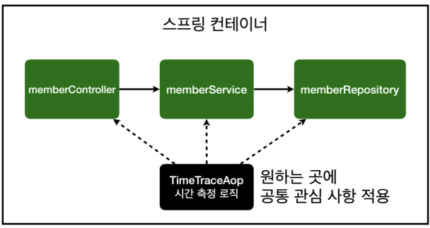 - 애플리케이션 전체에 흩어진 공통 기능이 하나의 장소에서 관리된다.
