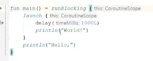 println("Hello ") //메인스레드는 코루틴이 지연되는 동안 계속 실행됨.