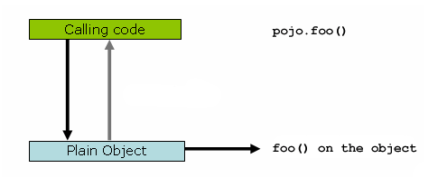 위처럼 일반 방식으로 메소드를 호출하면 그냥 그 즉시 객체에 접근한다. 그런데 프록시를 적용하면 pojo.foo라는 타겟을 요청하긴 하지만 DI를 통해 프록시가 주입되고 메소드 호출 시 프록시 내에서 모든 메소드 호출에 대한 interceptor들을 위임받아 설정한 Advice를 실행시킬 수 있게 된다. 이걸 실행한 후에 실제 foo를 호출한다.