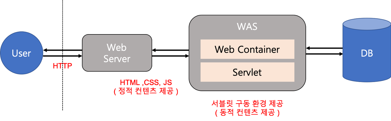 WAS는 DB 조회, 다양한 로직을 처리하는 데에 집중하고, 단순한 정적 컨텐츠는 웹서버에게 맡기는 것이 서로 서버 부하를 줄일 수 있다.