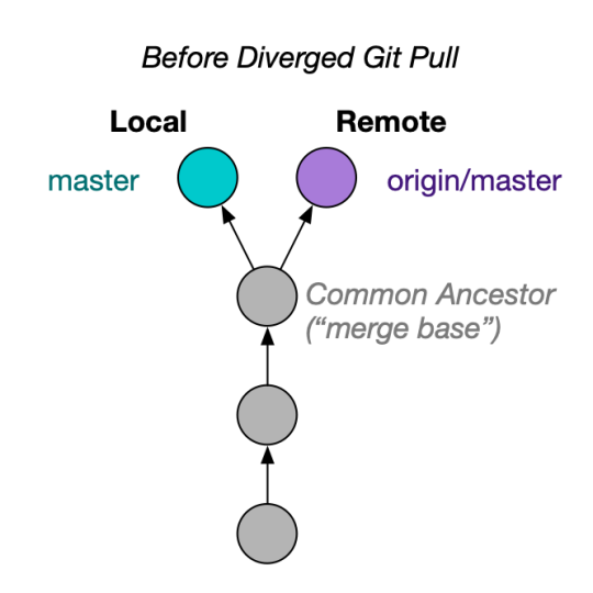 실제로 기존의 default git pull을 할 때 어떤 문제가 생기는지, 불필요한 커밋은 어디서 생기는지 문제 상황이 정리된 그림이 있어서 가져왔다. Local Branch에 작업하고 있는 도중인데 누군가에 의해 remote에 또다른 commit이 생긴 아래 상황을 보자.