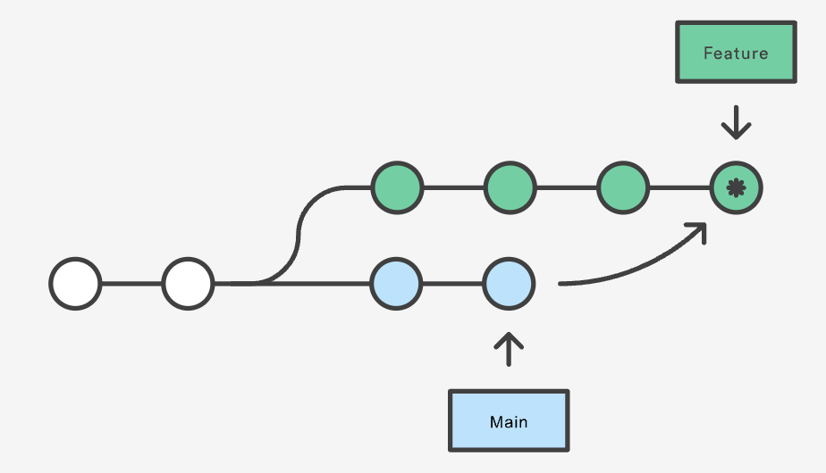 // 위 두 줄을 한 줄로 압축하면 git merge feature main 이다.