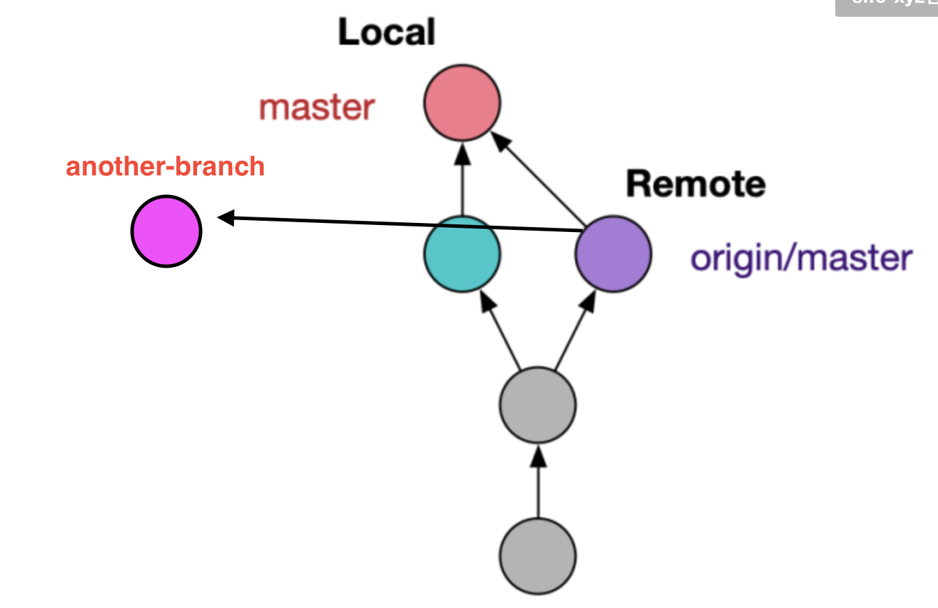 이 상태에서 내가 another-branch라는 브랜치에 checkout 한 뒤, 거기서 다시 git pull이나 git pull origin master를 하면 당연히 local master에 merge되는 게 아니라 내가 작업 중인 another-branch에 remote의 origin/master가 merge된다. 아래 오른쪽 그림처럼 된다.